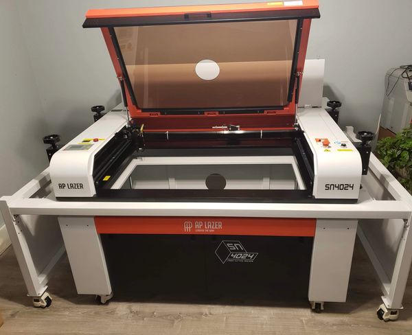 We acquired our third laser in April of 2024, which is a UV laser. This machine absolutely excels at glass work and fine details. It has a bed size of approximately 12"x12". It is so detailed that someone once engraved on a grain of rice! Under a microscope is was completely legible.